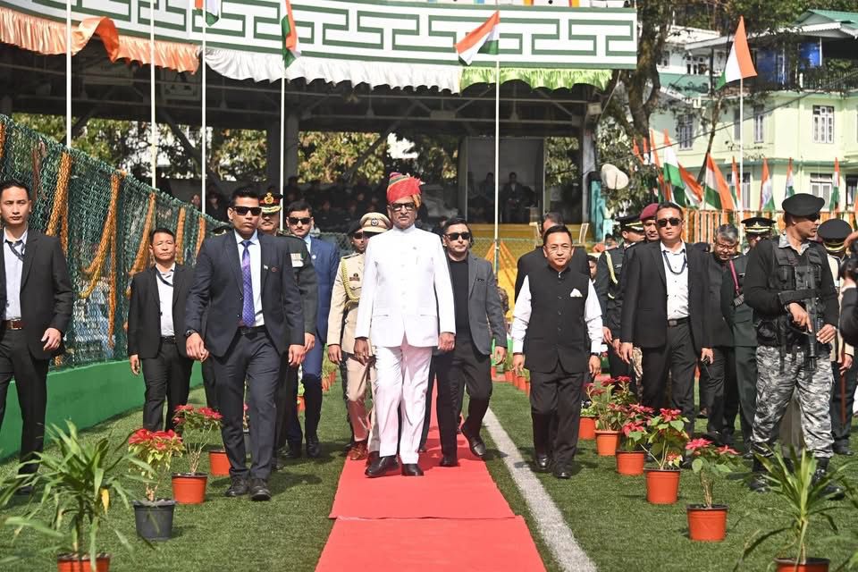 Earlier, the Governor unfurled the National Flag, followed by the National Anthem. After receiving the National Salute, he reviewed the Republic Day parade. The march past was led by Parade Commander Assistant Superintendent of Police Shri Suraj D (IPS) and Parade 2IC Police Inspector Shri Sonam Dorjee Lachenpa. Impressive contingents from the ITBP, SSB, Guest Platoon from Arunachal Pradesh (4th IRBn), Sikkim Armed Police, Indian Reserve Battalions, Sikkim Police (men and women), Forest and Environment Department, Home Guards and Civil Defence, NCC, and the Sikkim Police Pipe and Brass Bands participated in the parade.